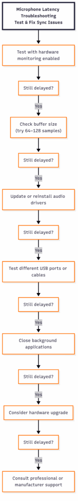 Remember that perfection isn’t always necessary – if your latency is under 15ms for most recording and streaming applications, you’re in good shape. Focus your optimization efforts where they’ll make the biggest difference: upgrading from USB microphones to audio interfaces, using proper drivers, and maintaining your system regularly.
